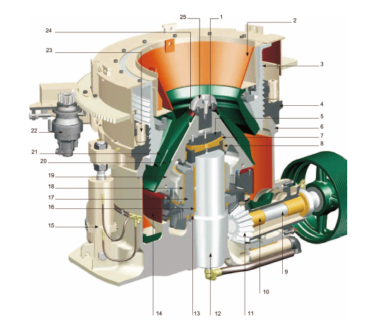 LCH 系列圓錐破碎機只需更換定錐襯板、動錐襯板、適配環(huán)和楔塊螺栓,即可將破碎腔型在短頭超細(xì)到標(biāo)準(zhǔn)超粗之間任意轉(zhuǎn)換。